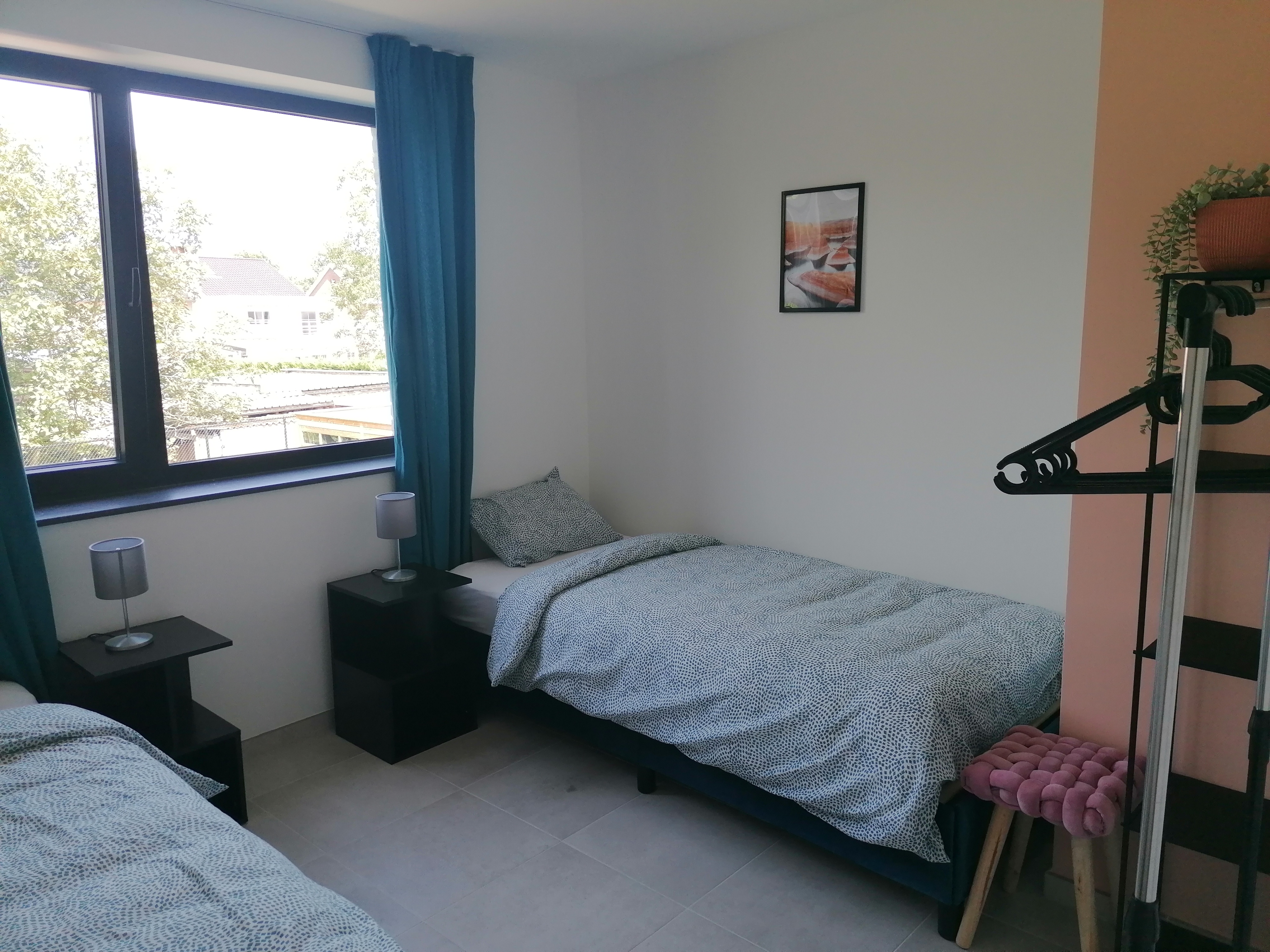 - 3 slaapkamers: 1 met dubbel bed, 2 met enkel bed